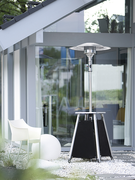 Газовый инфракрасный обогреватель Enders Trendstyle изготовлен из высококачественной нержавеющей стали. Баллон скрыт с помощью специального тканевого (полиамид) фартука, который служит контейнером, что придает обогревателю легкость и подчеркивает его оригинальный дизайн. По желанию владельца защитный фартук может быть забрендирован логотипом или названием, что делает данный обогреватель особо привлекательным для ресторанов, баров и кафе, а также для производителей различных продуктов и напитков. Газовый инфракрасный обогреватель Trendstyle оснащен комплектом съемных роликов, которые позволяют его легко перемещать. Для комфортной эксплуатации обогреватель оборудован столиком. Мощность горелки - 8 кВт. Опоры основания, изготовленные из стали с полимерным напылением, гарантируют устойчивость уличного газового инфракрасного обогревателя Trendstyle.