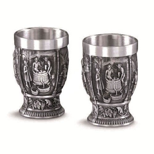 Набор состоит из двух рюмок, декорированные пищевым оловом. Стопки актуальны на любом праздничном столе. Однако оловянные стопки способны стать не только предметами праздничной сервировки стола, но и достойными подарками.