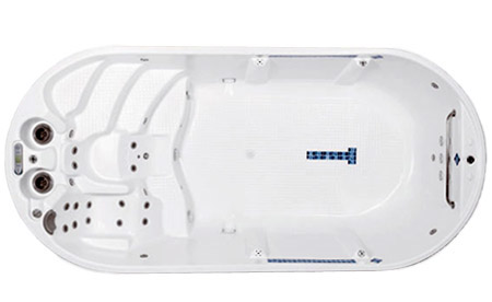 Подача воды - 6 мощных форсунок противотока, 16 гидромассажных форсунок