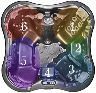 Система движения форсунок Jacuzzi Динамический массаж великолепно передает весь диапазон массажных техник – от нежного поглаживания, напоминающего ласку морского прибоя, до настойчивой проникающей вибрации, без следа растворяющей напряжение и усталость. Тактильная терапия, массаж Шиатцу, две запатентованные Массажные подушки NeckFlex - спа Lotus Bay предлагает изысканный баланс стиля и гидротерапии.