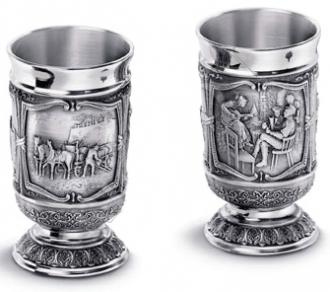 Набор состоит из двух рюмок, декорированные изображением охотников.