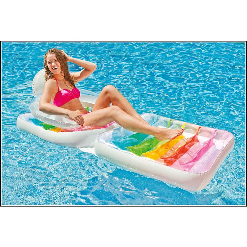 Intex 58847 Надувной матрас (198 х 94 см) имеет яркую радужную расцветку. Имеет спинку и подлокотники, и может использоваться как кресло. Intex 58847 Надувной матрас - идеальное решение при использовании как дома, так и на пляже.