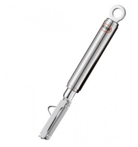 - Для быстрой чистки с помощью стабильно установленого, но подвижного лезвия овощей и фруктов со среднетонкой кожурой