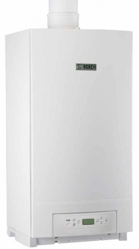 Condens 5000 W - настенный конденсационный одноконтурный котел для работы с бойлером ГВС; мощность 65 кВт; модуль управления Bosch Heatronic 3 (совместимость с контроллерами Bosch HT3 Fx и модулями IxM); LCD дисплей для отображения режимов работы и сервисной информации; силуминовый теплообменник; приоритет по ГВС; размеры ШхВхГ - 520x980x465 мм.; вес - 70 кг.