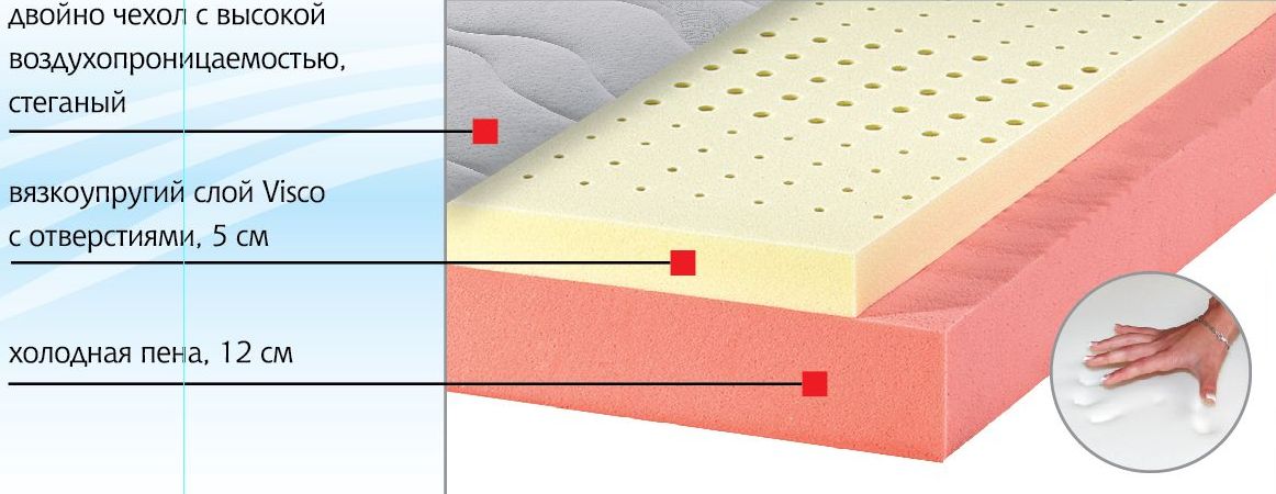 Visco Memory – особая пена, которая способствует высокому расслаблению мышц и связок тела, предотвращает передавливание кровеносных сосудов и нервных пучков во время сна, что ведет к улучшению сна.