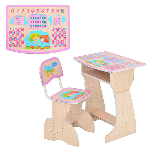 - На столешнице парты изображены украинский  алфавит, цифры и карта страны, которые     помогут ребенку в обучении, имеется бортик, предотвращающий падение канцелярских принадлежностей.