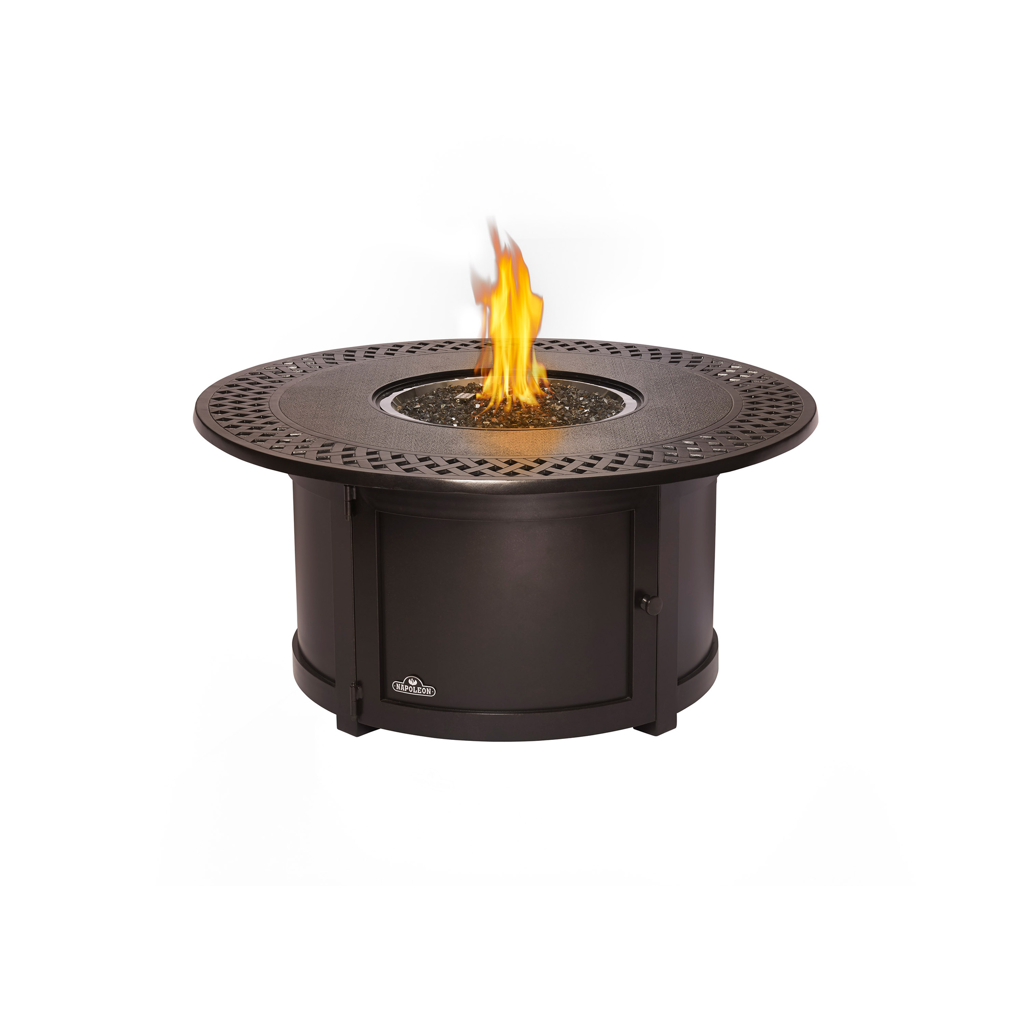 Патио Круглый газовый уличный стол-камин Victorian-3 имеет бронзовую отделку, а линейная газовая горелка добавляет современный вид пламени. Патио Круглый газовый уличный стол-камин Victorian-3 без труда мгновенно согреет и осветит. Патио Круглый газовый уличный стол-камин Victorian-3 обеспечивает прекрасный уютный мерцающий огонь и свет. Баллон для пропана скрывается за эргономичной дверцей самого патио стола-камина. Термо-клапан установленный в патио Victorian-3 обеспечивает функцию безопасности, он отключает газ когда пламя нарушается, но также экономит пропан предотвращая утечку газа, как только пламя погаснет. Топазное стекло красиво рассеивает свет пламени. Используйте его как стол и создайте уютный уголок для приятных бесед. Камин изготовлен из литого алюминия, благодаря этому имеет малый вес и высокую износоустойчивость. Сложный сплетенный узор и отделка бронзового цвета будет очень гармонично выглядеть на любом дворе. В комплект также входит крышка для стола.