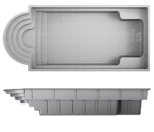 Бассейн Compass JAVA имеет современную геометрическая форма чаши бассейна. Два входа в бассейн можно использовать для зоны отдыха. Ступени, сиденья для отдыха и дно бассейна имеют противоскользящюю поверхность Slip Stop. Возможность установки гидромассажных форсунок в широкой части ступеней и в зоне отдыха бассейна. Интегрированный гидростатический вентиль, препятствует выталкиванию бассейна грунтовыми водами.