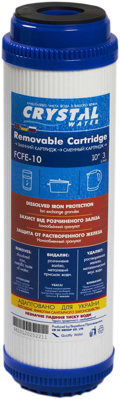 Фильтр для воды FCFE-10 содержит технически обработанные ионообменные гранулы (от 0,2 до 0,7 мм). Снижает концентрацию железа, удаляет сероводород, устраняет металлический запах и привкус воды. FCFE-10 водяной фильтр предохраняет сантехнику от появления желтых пятен и подтеков. Картридж имеет собственный постфильтр, задерживающий частички пыли.