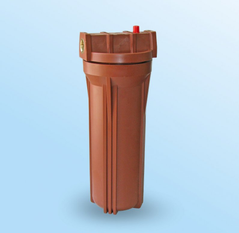Натрубный двухсоставной корпус FHTRHOT-12 состоит из колбы и крышки с латунной резьбой 1/2”. Непрозрачный корпус защищает картридж от развития процесса фотосинтеза, а плотные стенки корпуса и ребра жесткости позволяют выдерживать высокое давление. Фильтр оснащен воздушным клапаном, который позволяет выпустить воздух после замены картриджей, и резиновой прокладкой, которая защищает от протекания. Благодаря использованию уникального термостойкого, ударопрочного и антикоррозийного пластика фильтр FHTRHOT превосходит по эксплуатационным показателям и надежности традиционные фильтры из нержавеющей стали.
