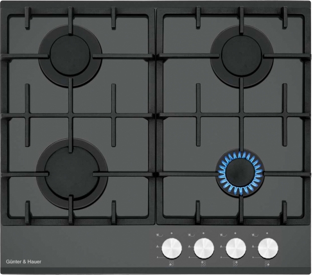 Варочная поверхность Gunter&Hauer GH 461 GLB имеет газ на стекле, чугунные решетки.
