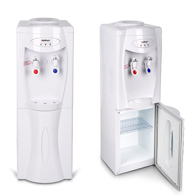 HotFrost V208XЕ кулер (диспенсер) напольный с функцией нагрева бутылированной воды (5 л/ч) и электронным охлаждением (1 л/ч). HotFrost V208XЕ оснащен кранами "Нажми кружкой " и верхней загрузкой бутыли и шкафчиком-озонатором, объёмом 17л.