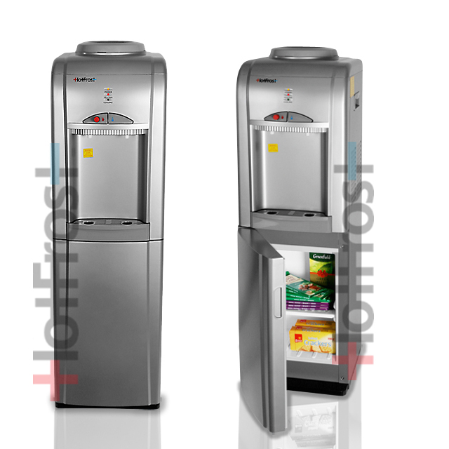 HotFrost V802СS кулер (диспенсер) напольный стильный с функцией нагрева бутылированной воды (5 л/ч) и компрессорным охлаждением (2 л/ч). HotFrost V802СS оснащен шкафчиком для хранения объёмом 17 л и верхней загрузкой бутыли. Выключатели на боковой панели позволяют отключать нагрев и охлаждение воды. Кнопка подачи горячей воды с функцией защиты от детей. Нагревательный элемент бачка горячей воды не контактирует с водой.