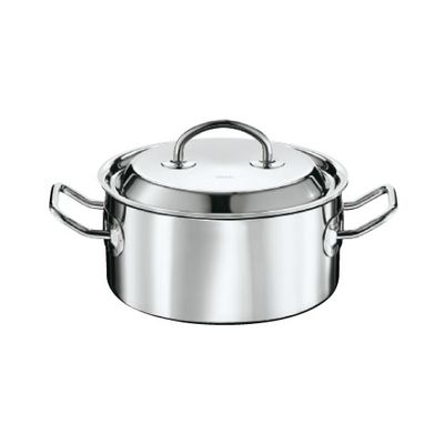 Кастрюля, Rosle 20 см изготовлена из нержавеющей стали. Подойдет для жарки и тушения мяса. Эта кастрюля меньше, чем другие кастрюли такого же диаметра и это делает приготовление большого куска мяса простой задачей