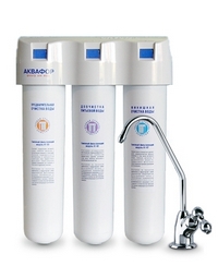 Водоочиститель, встраиваемый под мойку на кухне. Присоединяется к водопроводу соединением на 1/2". Укомплектован отдельным краном для чистой воды, который устанавливается на столешницу мойки.